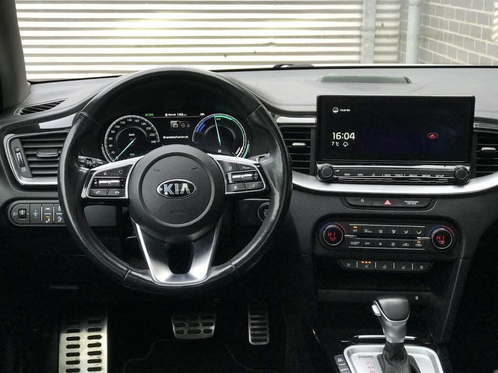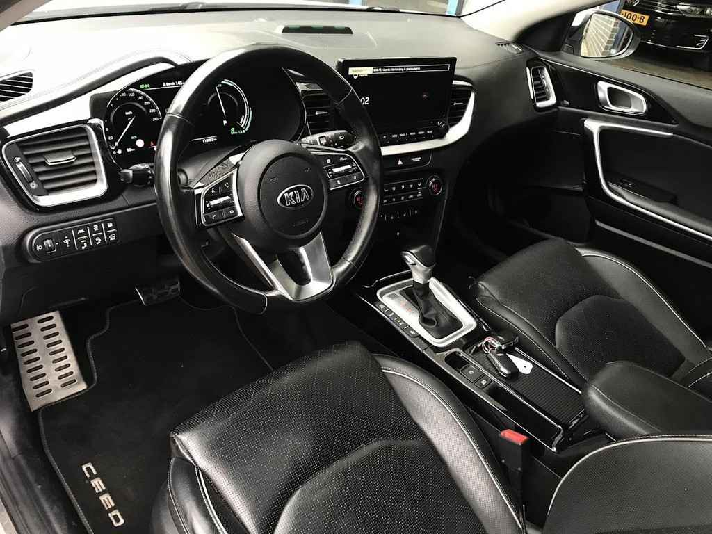 Kia Ceed Sportswagon 1.6 GDI PHEV ExecutiveLine. Moderne en ruime plug-in hybride stationwagen die comfort, luxe en efficiëntie perfect combineert. Uitgevoerd in de luxe ExecutiveLine met lederen bekleding, navigatiesysteem, achteruitrijcamera, panoramisch dak en keyless entry & start. Daarnaast beschikt deze Kia over een elektrische achterklep, stoelverwarming én stoelventilatie, en stuurwielverwarming, wat zorgt voor optimaal comfort in alle seizoenen. Het hoogwaardig afgewerkte interieur en de royale bagageruimte maken deze Ceed Sportswagon zeer geschikt voor zowel zakelijk als privégebruik. De auto is altijd dealeronderhouden bij Kia en wordt geleverd inclusief 12 maanden garantie.